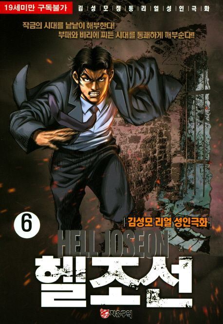 김성모 정통 리얼 성인극화 『헬조선』제6권. 작금의 시대를 낱낱이 해부한다! 부패와 비리에 찌든 시대를 통쾌하게 깨부순다!