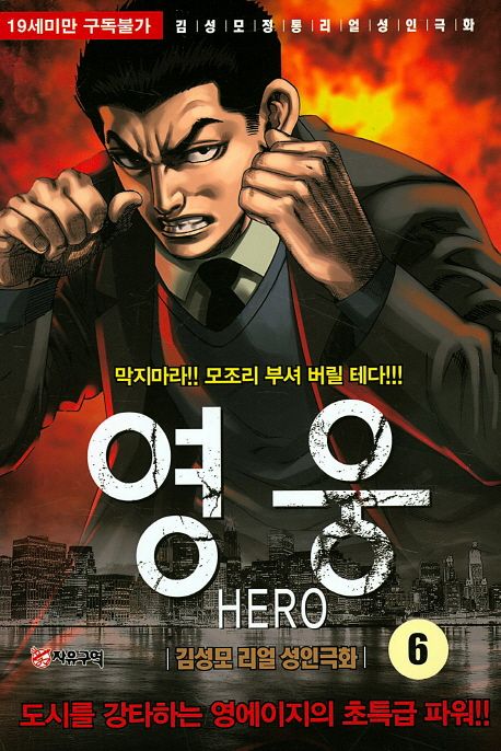 김성모 만화 『영웅』제6권. 도시를 강타하는 영에지의 초특급 파워!! 막지마라!! 모조리 부셔 버릴 테다!!!!