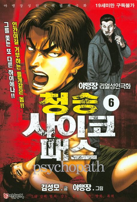 김성모 만화 『청송 사이코 패스』제6권. 인간이길 거부하는 들개 같은 놈!! 그를 쫓는 또 다른 하이에나!!