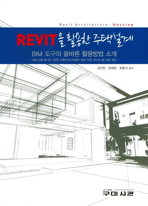 [REVIT을 활용한 주택설계]는 BIM도구의 올바른 활용방법 소개하고, BIM모델 하나로 다양한 건축허가도서(평면-입면-단면, 투시도 등)자동생성 등에 대해 살펴본 책이다.