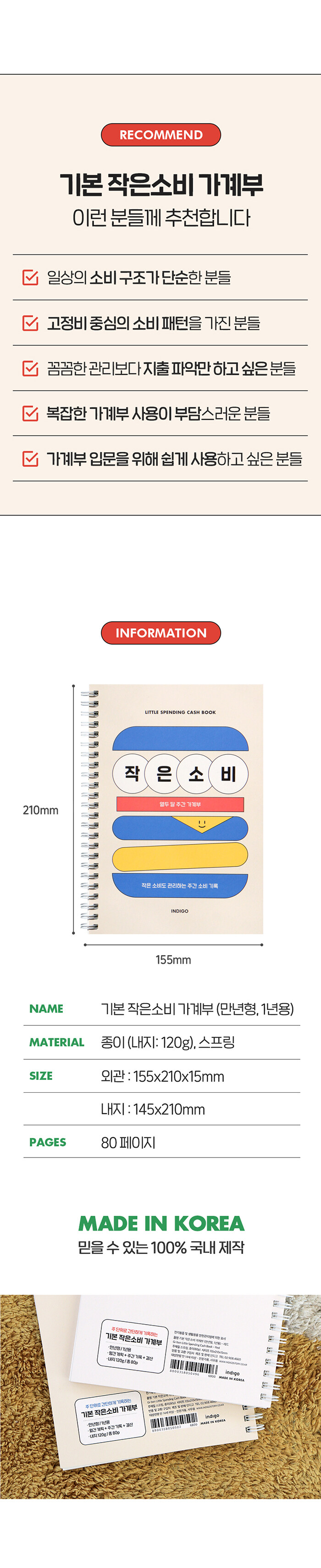 · 제목 : [블루] 기본 작은소비 가계부 (만년형, 1년용)