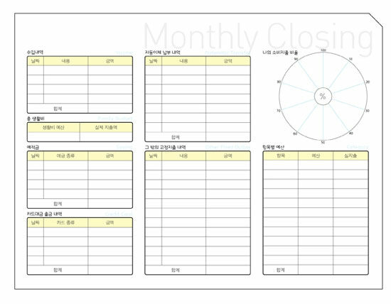 월간 플래너 & 결산 / 일간 수입지출 & 주간 결산