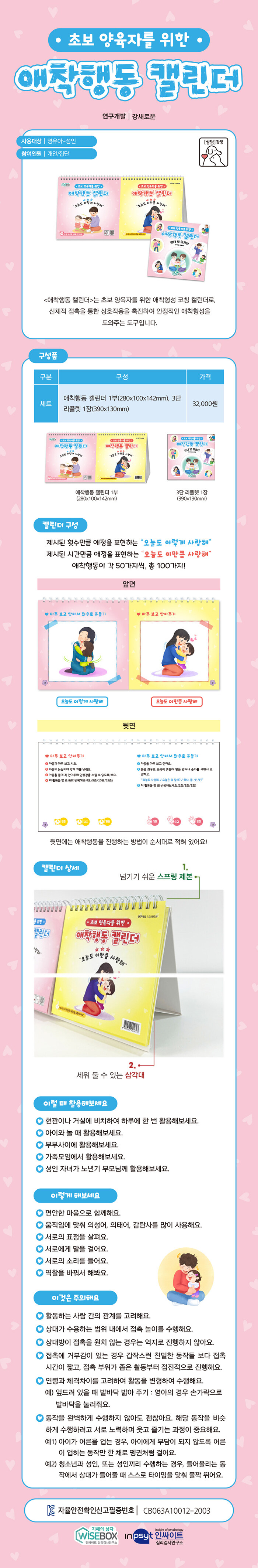 애착행동 캘린더 1부(280x100x142mm), 3단 리플렛 1장(390x130mm)