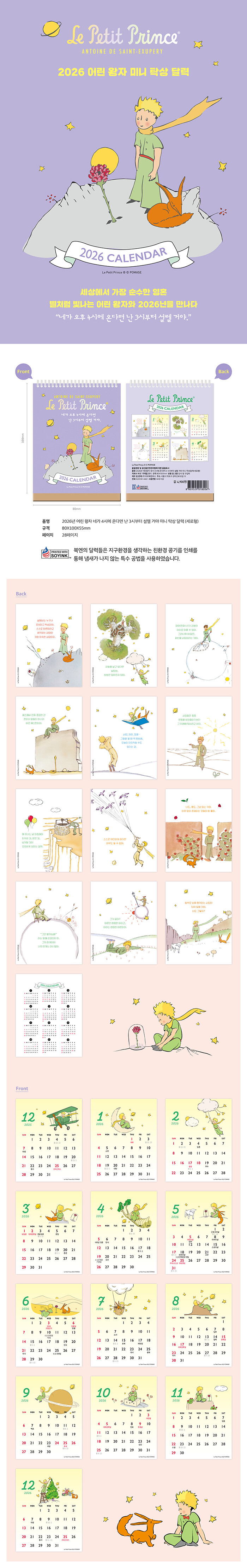달마다 《어린 왕자》 속 감성적인 삽화와 함께 삶과 사랑에 대한 메시지를 담았다. 작은 크기이지만 한 장 한 장 넘길 때마다 원작의 감동이 되살아나며, 바쁜 일상 속에서도 ‘소중한 것은 눈에 보이지 않는다’는 어린 왕자의 목소리를 전한다.