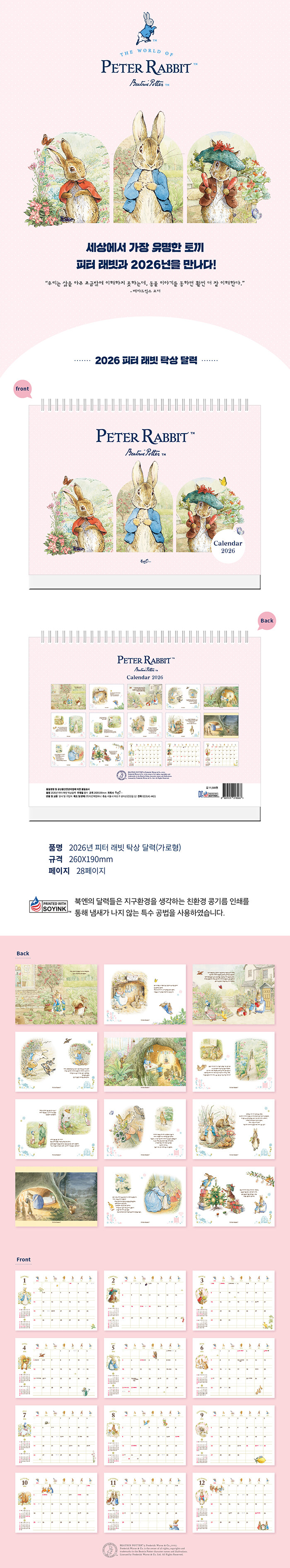 그 재기 발랄하고 엉뚱하고 사랑스러운 이야기를 담은 2026년 피터 래빗 탁상달력이 나왔다.