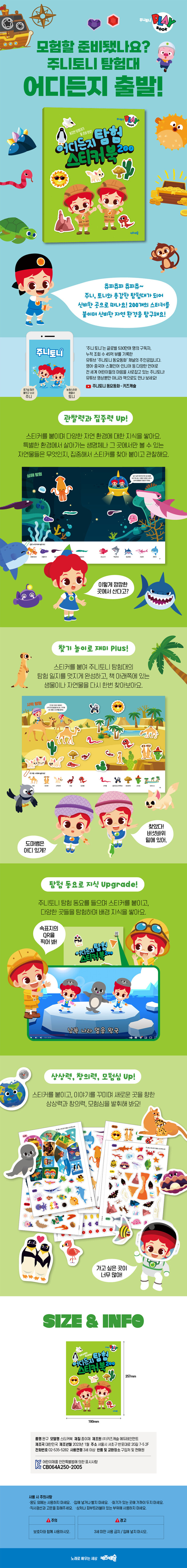 주니, 토니와 용감한 탐험대가 되어 신비한 곳으로 떠나보자. 전 세계 530만 키즈 구독자가 사랑하는 유튜브 캐릭터 주니토니와 함께 200개의 스티커를 붙이며 지구 곳곳의 자연 환경을 탐구하자.