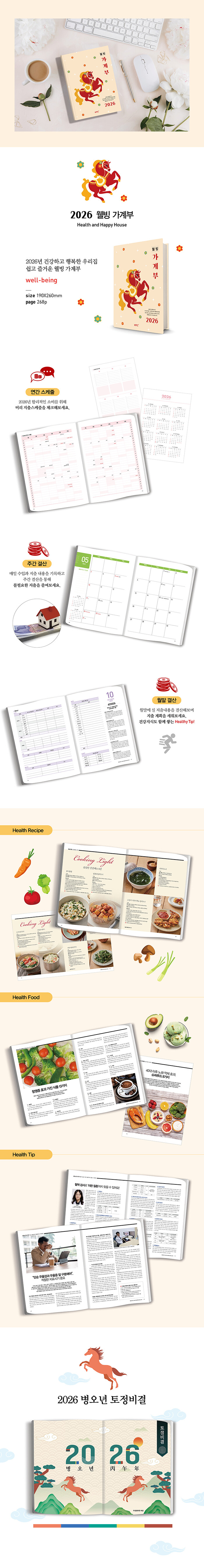 일 년 내내 현명한 소비생활로 건강하고 행복한 우리 가정을 만들어 보자는 마음으로 웰빙하고 심플한 리빙 생활에 도움이 되고자 한다. 똑똑한 정보와 일간, 주간, 월간, 연말 총 수입지출 결산으로 나뉜 체계적인 구성으로 감각적인 디자인 편안한 컬러로 구성되어 매일매일 가벼운 마음으로 꾸준히 기록할 수 있게 만들어졌다.