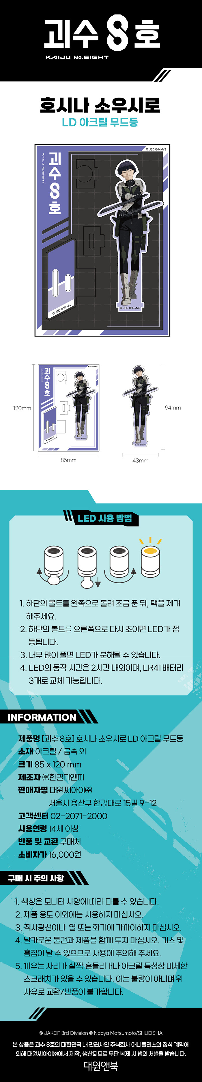 · 제목 : 괴수 8호 호시나 소우시로 LD 아크릴 무드등