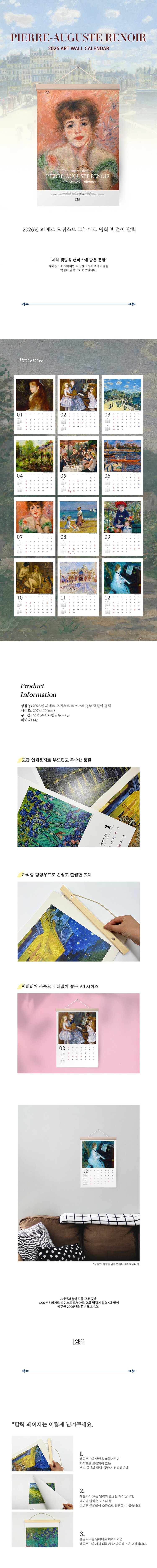 · 제목 : 2026년 르누아르 명화 벽걸이 달력 (행잉우드 포함, A3)