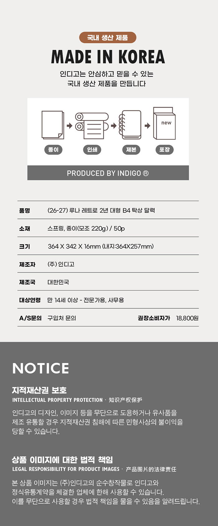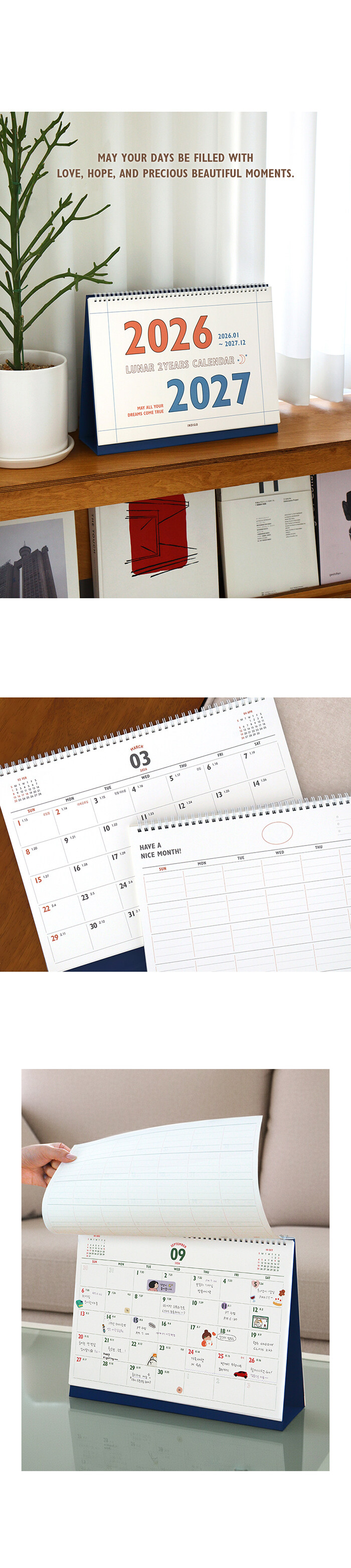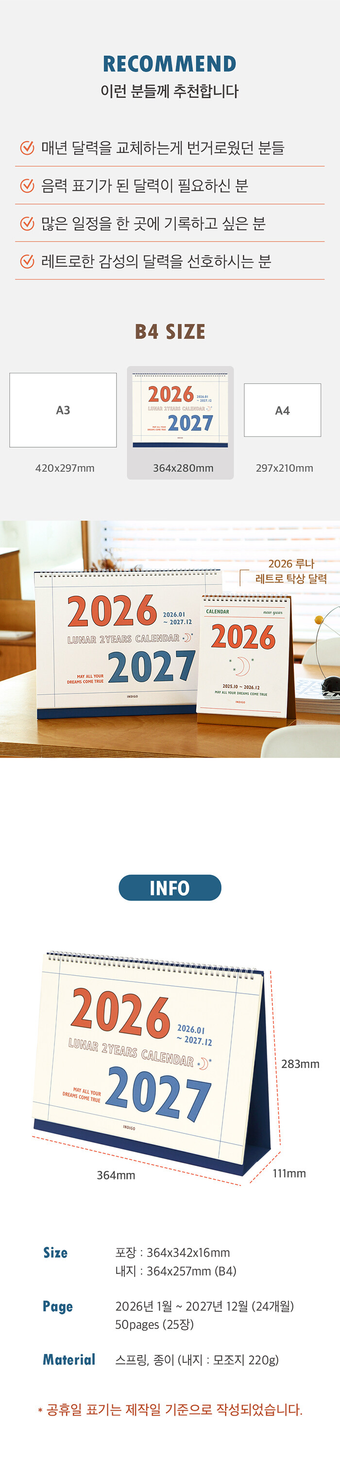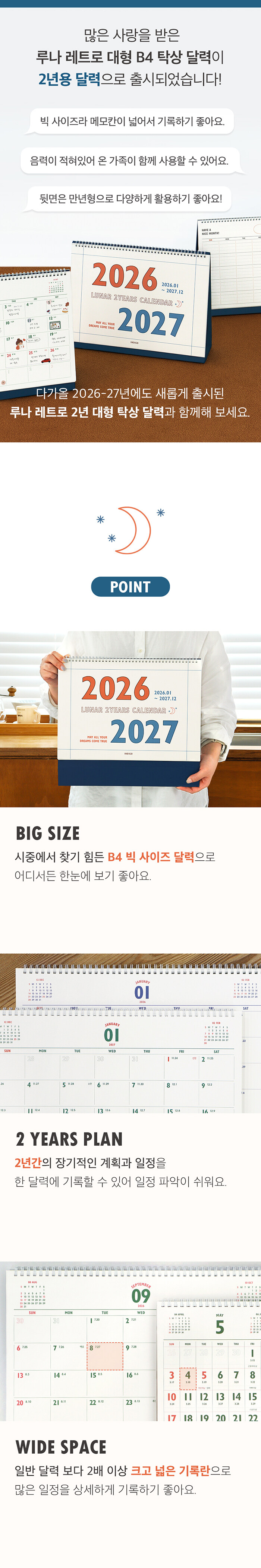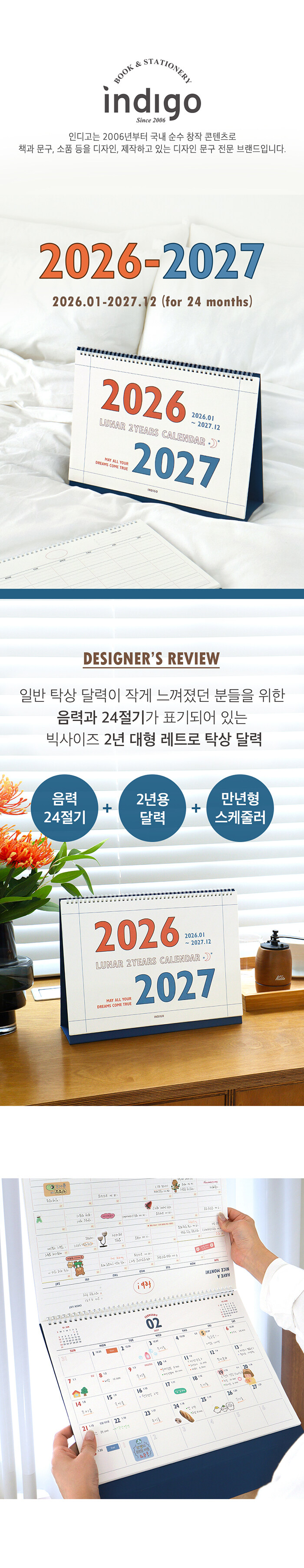 · 제목 : 2026-2027 루나 레트로 2년 대형 B4 탁상 달력 (26년 1월~27년 12월, 음력, 절기)