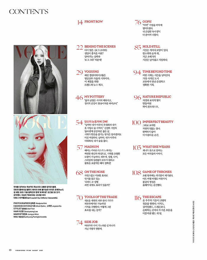 · 제목 : 보그 Vogue Korea C형 2025.8 (표지 : 로제) (주요기사 : 로제, 안유진, 제니, 한소희, 공효진)