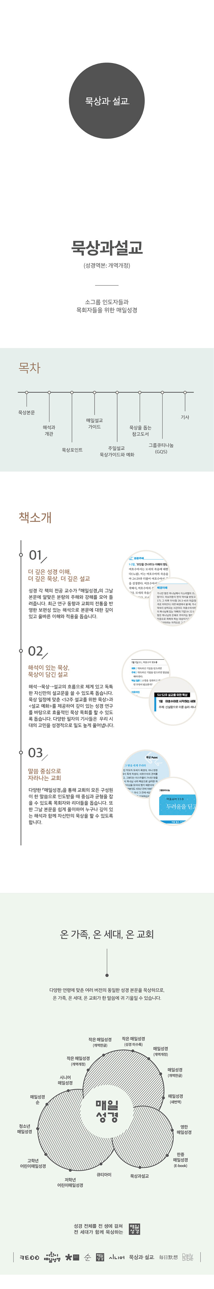 ․ 본문에 대한 분석과 주해, 적용 착안점, 매일설교 아웃라인, 주일설교 묵상가이드 등 묵상에서 설교까지의 과정을 체계 있게 제시함으로써 설교를 돕습니다.