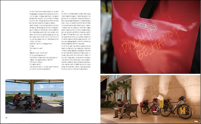 나는 고래다. 가설을 바꾸자 현상들이 맞아 떨어졌다. 무중력 상태에 뜬 듯 힘이 들어가지 않았던 페달링. 두 개의 페달은 그때 내 꼬리지느러미였다. 내 몸의 신경과 핏줄과 힘줄이 페달과 체인을 통해 바퀴까지 이어졌던 거다. 더운 햇살과 시원한 바람이 뒤섞인 오키나와의 대기는 한없이 투명한 푸른 바다와 같았다. 가와세 나오미 감독의 ‘소년 소녀 그리고 바다’에서 마지막에 소년과 소녀가 손을 잡고 함께 유영하던 바다처럼. 나는 자전거를 타는 것도 아니었고 특정한 목적지를 향해 가는 것도 아니었다. 원고에는 이 기분을 뭐라고 설명해야 할지 고민하던 것도 파도 포말처럼 사라졌다. 잡지 만들어 먹고 사는 일이 가능할까, ‘지르고 감당하자’ 생각하고 내지른 출장이 과연 잘한 짓일까 따위 고민은 참으로 사소해졌다. 그 순간 오직 중요한 건 내가 고래라는 사실, 한 마리 고래로 태평양의 심연을 유영하고 있다는 사실뿐이었다. 거품으로 사라지는 포말이 고래의 행진에 영향을 미치지 못하듯, 그런 것들은 언젠가 어차피 어떻게든 해결될 것이었다. ‘언제’와 ‘어떻게’에 따라 많은 것이 달라지긴 하겠지만, 나는 ‘어차피’라는 패를 쥐고 있었다. 뭐 잘 되지 않겠어? 혹은 죽기야 하겠어?