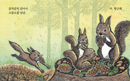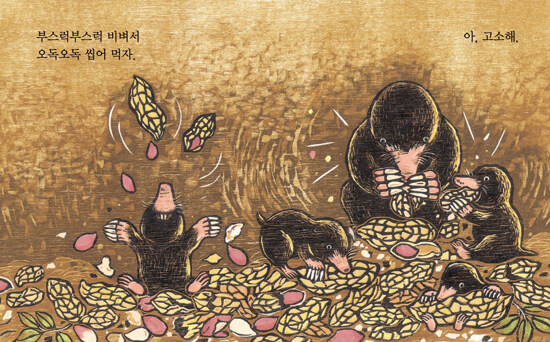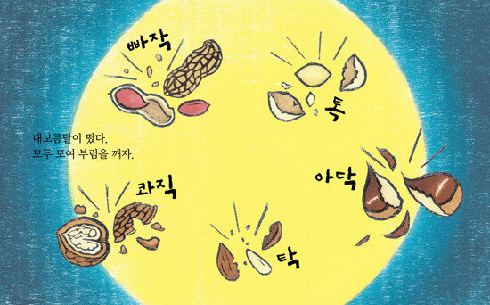 정월대보름날 부럼 까먹는 이야기를 풀어낸 아기그림책. 아기 동물들이 맛있는 열매를 까먹고 있다. 두더지는 땅콩을 '빠작', 청설모는 잣을 '탁', 토끼는 밤을 '아닥'. 까마귀는 호두를 '콰직', 너구리는 은행을 '톡'. 집집마다 재미있는 소리가 나는 날, 정원대보름. 아기와 함께 부럼을 깨면서 다양한 소리 말을 흉내내 볼 수 있도록 구성하였다.