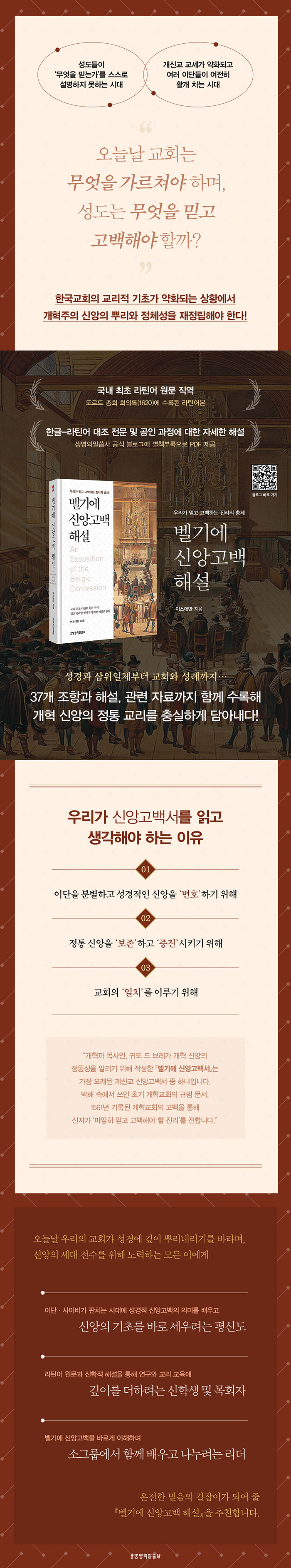 벨기에 신앙고백은 오늘날 교회에서 사용하는 가장 오래된 신앙고백서들 중 하나입니다. 이 신앙고백은 웨스트민스터 신앙고백보다 45년 이상 앞섭니다. 라틴어로 “벨지카”(Belgica)는 오늘날 네덜란드와 벨기에로 분할된 북쪽과 남쪽의 저지대 전체를 일컫습니다.