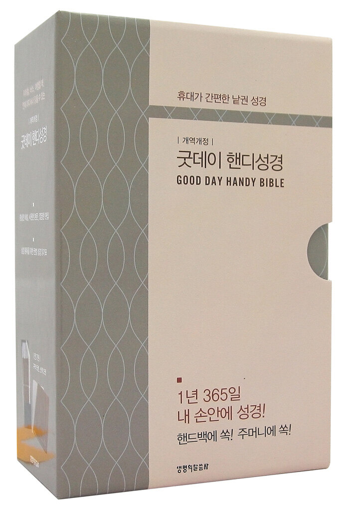 휴대가 간편한 낱권으로 된 개역개정 굿데이 핸디 성경. 예배용 개역개정 4판 본문으로, 구약 5권, 신약 2권으로 구성했다. 성경 통독을 위한 권별 성경 읽기표를 수록했다. 지하철, 버스, 여행시 등 언제 어디서나 읽을 수 있는 낱권 성경.