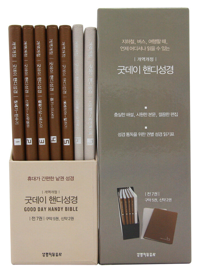 · 제목 : 개역개정 굿데이 핸디 성경 - 대(大) / 신구약 세트 - 전7권 (구약 5권, 신약 2권) (오픈식.은장.가죽)