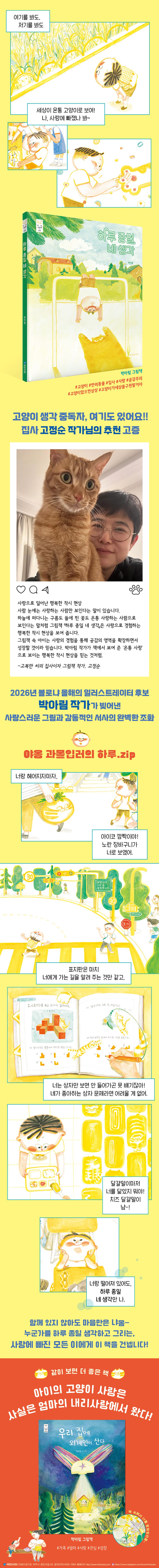 우리 그림책 시리즈. 집에 있는 고양이를 떠올리며 하루를 보내는 아이의 이야기다. 떨어져 있는 동안에도 계속해서 고양이를 생각하는 마음을, 꾹꾹이 하는 고양이처럼 꾹꾹 눌러 담은 사랑스러운 그림책이다.