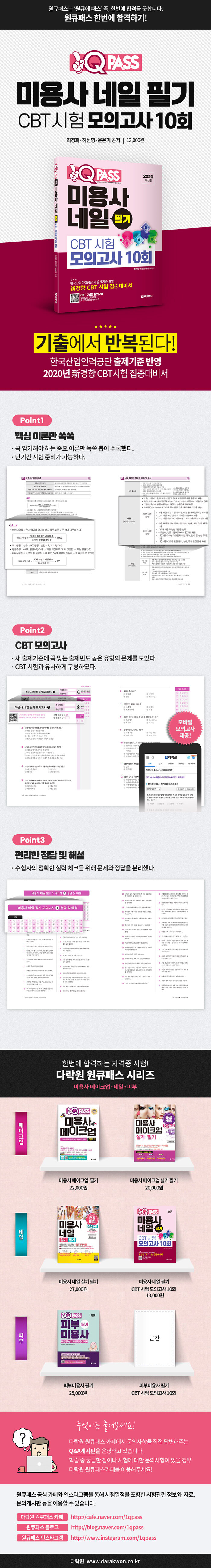 · 제목 : 2020 원큐패스 미용사 네일 필기 CBT 시험 모의고사 10회 (新경향 CBT 시험 집중대비서)
