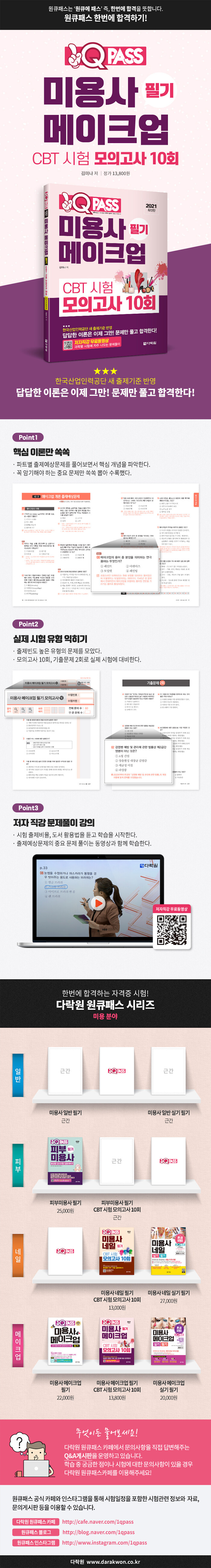 · 제목 : 2021 원큐패스 미용사 메이크업 필기 CBT 시험 모의고사 10회 (저자 직강 무료 동영상 제공)