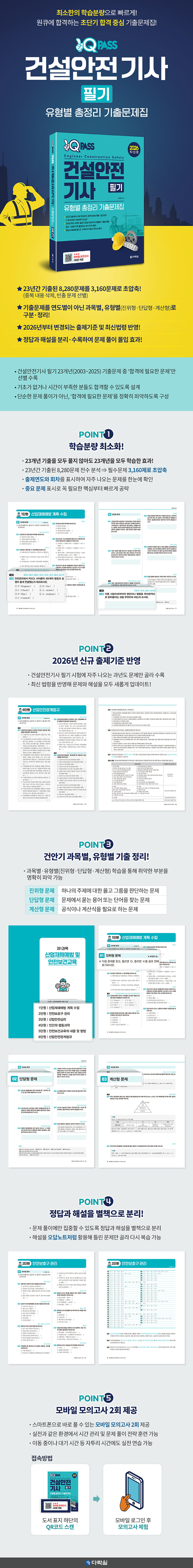 · 제목 : 2026 원큐패스 건설안전기사 필기 유형별 총정리 기출문제집 (23년간 출제된 8,280문제를 필수 3,160문제로 압축 수록 / 과목별·유형별 정리)