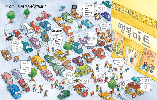 그림 속 숨은 이야기 찾기를 통해 4~6세 유아의 지능과 감성을 키워주는 그림책. 한 장 한 장 책장을 넘길 때마다, 한 번 두 번 책을 볼 때마다 숨은 그림을 찾듯이 새로운 이야기를 발견하게 되는 그림책이다. 온갖 것들이 다 있는 행복 마트에서 개성 넘치는 등장인물들이 펼치는 좌충우돌 장보기 이야기를 통해, 아이들의 지능과 감성을 키워 준다.
