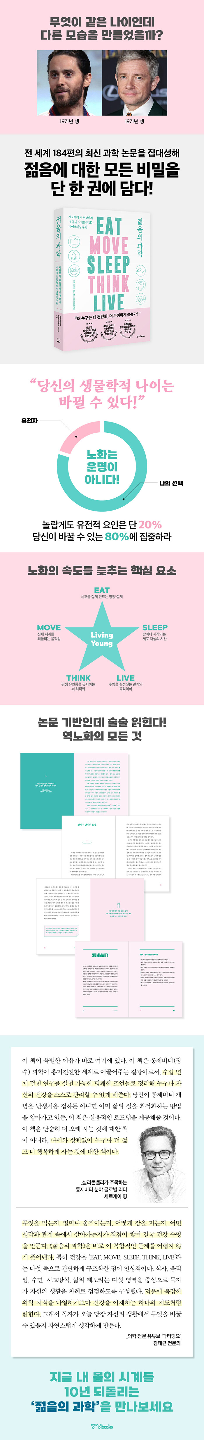 《젊음의 과학》이 제안하는 변화는 거창하지 않다. 단 하나의 습관이 아니라, 일상의 작은 선택들을 바꾸는 것이다. 무엇을 먹고, 어떻게 움직이며, 어떻게 쉬고, 어떤 마음으로 살아가는지에 따라 몸은 빠르게 반응한다. 흩어진 건강 정보를 찾아 헤매는 대신, 이 한 권을 기준으로 삼고 실천해보자. 더 가볍고 선명한 컨디션, 그리고 이전과는 다른 몸의 변화를 경험하게 될 것이다.