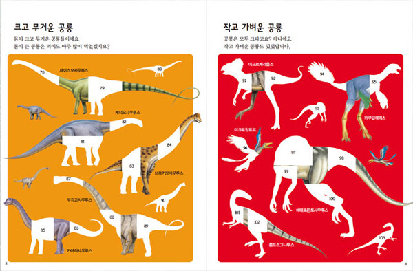 스티커 활동을 통해 아이들이 좋아하는 공룡, 익룡, 수장룡 등을 만날 수 있는 스티커북. 공룡은 육식 공룡, 초식 공룡, 무거운 공룡, 가벼운 공룡 등으로 구분하였으며, 아이들은 공룡의 특징을 살펴보면서 스티커를 붙여볼 수 있다. 또한 시원하게 펼쳐진 공룡 시대를 배경으로 공룡 퍼즐도 맞춰볼 수 있다.
