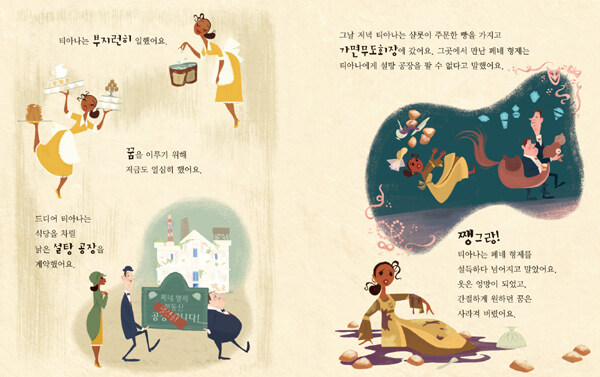 개구리가 된 티아나와 나빈 왕자가 사람으로 돌아가고자 고군분투하는 이야기. 4~6세를 위한 '리틀무비북'으로 애니메이션의 장면을 독자 연령에 맞게 알록달록하고 귀여운 느낌의 삽화와 이해하기 쉬운 글로 재구성하였다.