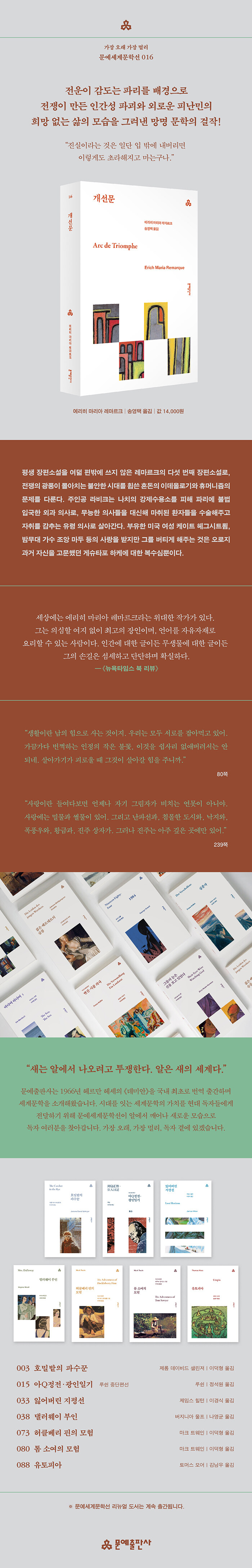 평생 장편소설을 여덟 편밖에 쓰지 않은 레마르크의 다섯 번째 장편소설로, 이전 소설들의 후편이라고 할 수 있으며 레마르크의 작품 중에서 가장 널리 알려진 소설이다. 2차 세계대전을 앞두고 전쟁의 공포에 떨며 비참한 운명의 나락으로 떨어져가는 사람들의 모습을 그린 반전 소설이다.