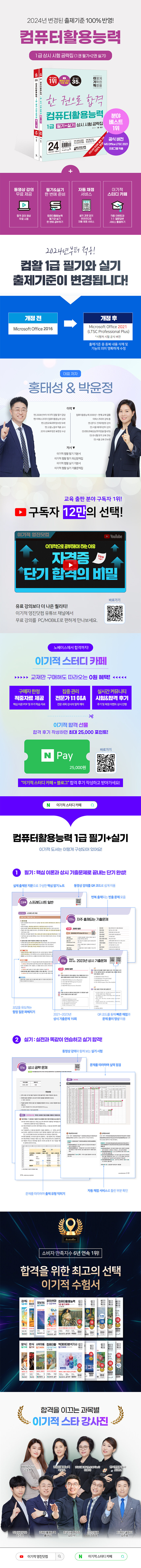 · 제목 : 2024 이기적 컴퓨터활용능력 1급 필기 + 실기 상시 시험 공략집 (2024년 출제 기준 반영 + 동영강 강의 무료 제공 + 자동 채점 서비스)