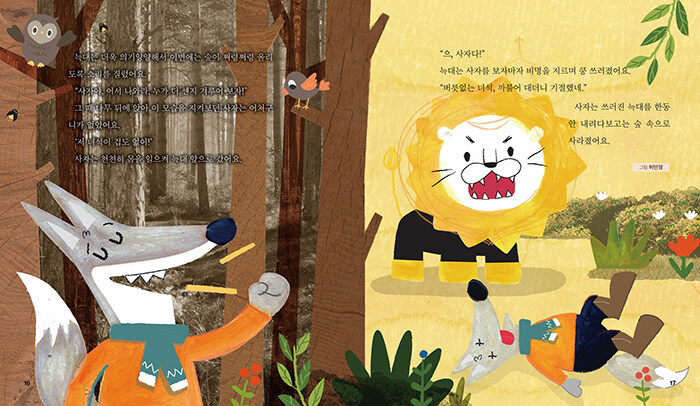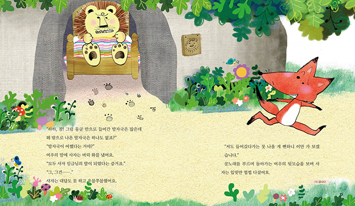 여우의 말에 사자는 버럭 화를 냈어요.
