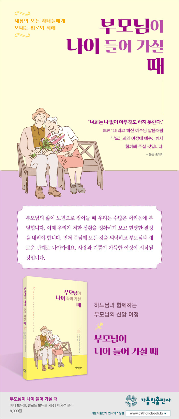 부모님이 나이 드시는 것을 보면서 무력감에 빠질 수도 있습니다. 그럴수록 우리가 직면한 상황을 정확하게 보고 필요한 결정을 내려야 합니다. 그러면 여전히 희망을 간직할 수 있는 능력이 우리에게 있다는 것을 체험하게 될 것입니다.