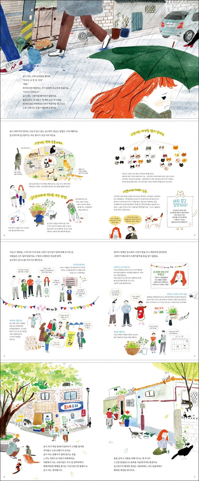 별별이웃 시리즈. 도시의 열악한 환경에서 살아가는 길고양이를 돌보는 ‘캣맘’ 숨이 씨와 친구들의 모습을 그리면서 작은 존재일지라도 공감하고 존중하는 따뜻한 마음과 동물의 생명권 보장에 대해 이야기한다.