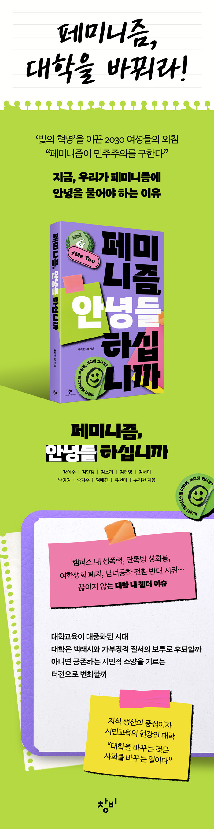다양한 차이들의 공생과 공존을 모색해온 페미니즘의 기획이 이미 민주주의를 갱신해나가는 과정이었음에도, 페미니즘이 사회변혁을 위한 비판적 지식과 실천으로 다뤄지기는커녕 오히려 사회갈등을 야기하는 이기적인 입장으로 왜곡되는 현실을 지적한다.