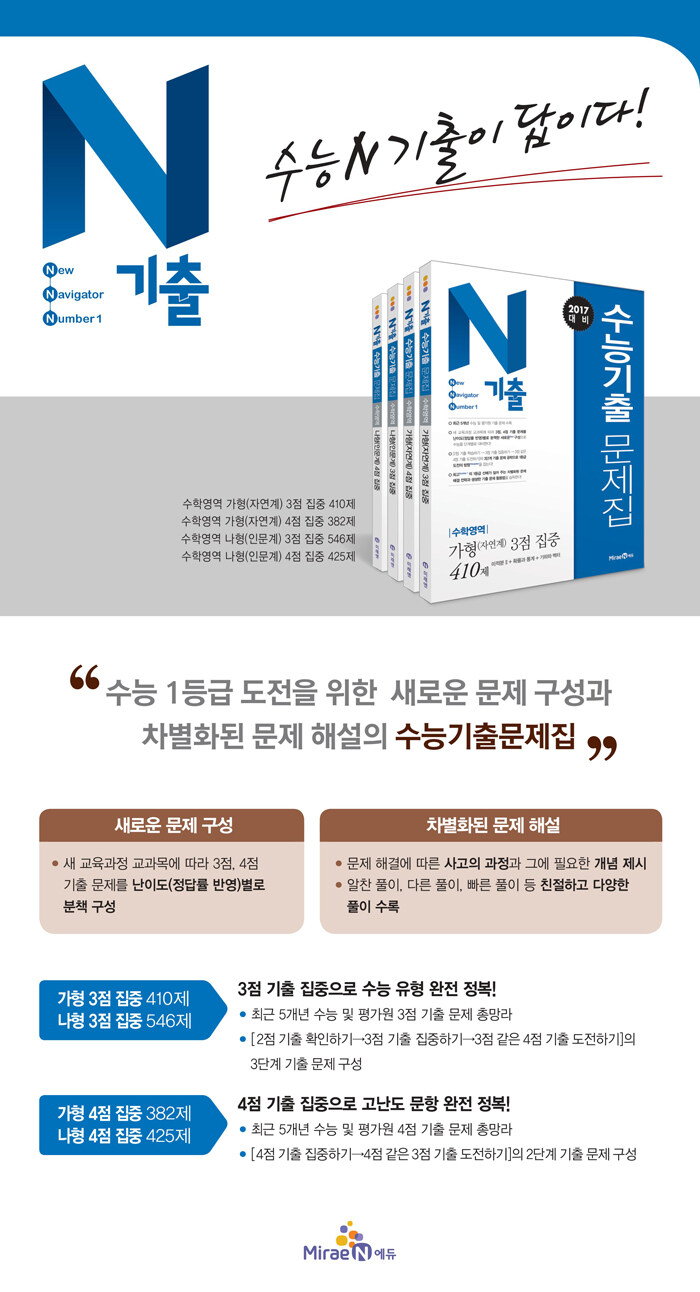 · 제목 : N기출 수능기출 문제집 수학영역 나형(인문계) 3점 집중 546제 (2016년) (2017 수능 대비)
