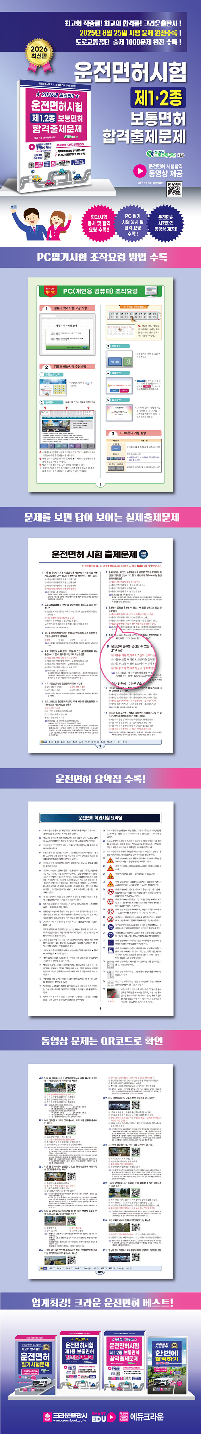 25년 8월 25일 시행문제를 수록하였다. 도로교통공단 출제문제, 필기시험 응시 및 합격요령 수록하였으며, 간략하고 쉬운 핵심요약과 PC필기시험 조작요령 방법을 수록하였다.