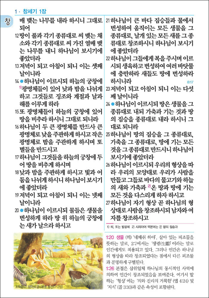 큰글자 컬러 성경의 완결판. 큰 활자, 높은 가독성에 합리적인 사이즈의 가정용.통독용 성경이다. 큰 글자 본문을 올 컬러로 편집했다.