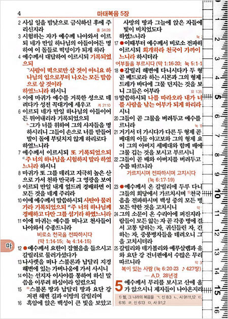 주석 없는 슬림형 성경으로 휴대가 간편하며, 예수님 말씀은 적색으로 인쇄되었다. 교회 비치용이나, 전도용 선물로 좋다.