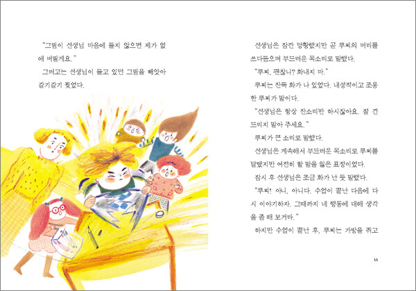 그러고는 선생님이 들고 있던 그림을 빼앗아 갈기갈기 찢었다.