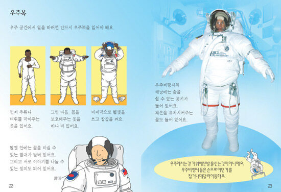 우주비행사가 어떤 훈련을 하고 우주에서 어떤 생활을 하는지, 우주왕복선이 어떻게 발사되어 우주정거장에 가는지 등을 알려주는 책. '우주비행사들은 어떻게 우주로 여행할까? 우주로 간 우주비행사들은 어디에서 살까? 우주비행사들은 온종일 무엇을 하면서 지낼까?' 등 우주생활에 대한 이야기가 담겨 있다.