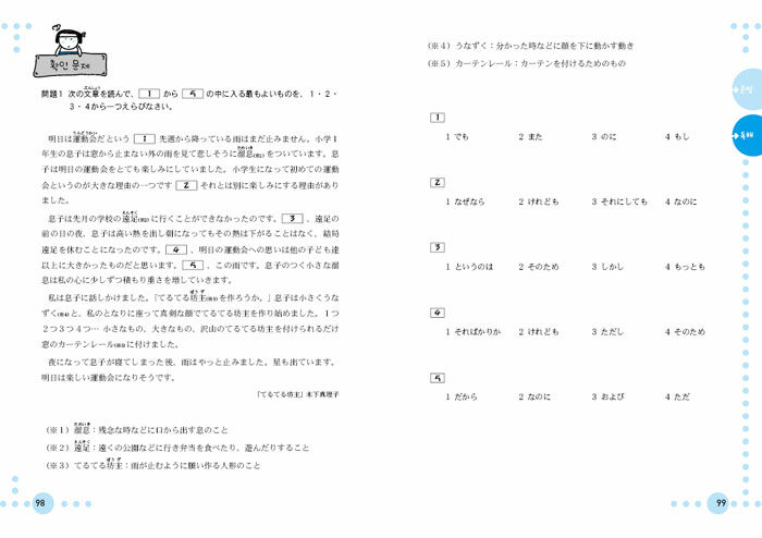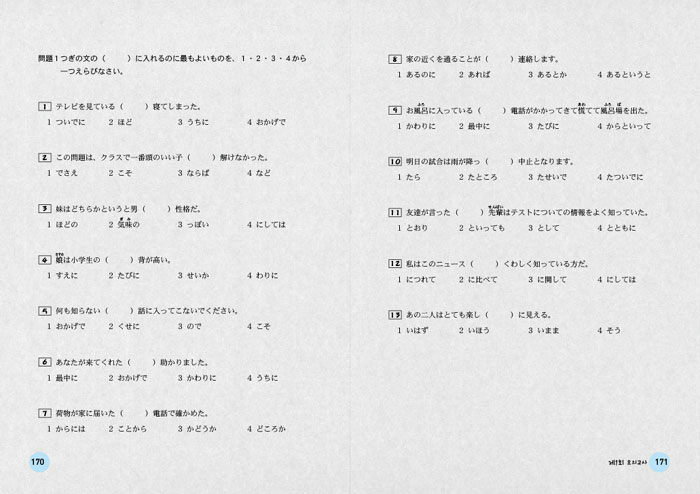 확 바뀐 일본어능력시험을 철저하게 분석하여, 새로운 시험에 충분히 적응할 수 있도록 풍부한 문제를 담은 교재. 유형에 충분히 익숙해 질 수 있도록 구성한 각 유형별 실전문제뿐 아니라, 3회분의 모의고사로 보다 완벽하게 시험에 대비할 수 있도록 하였다.