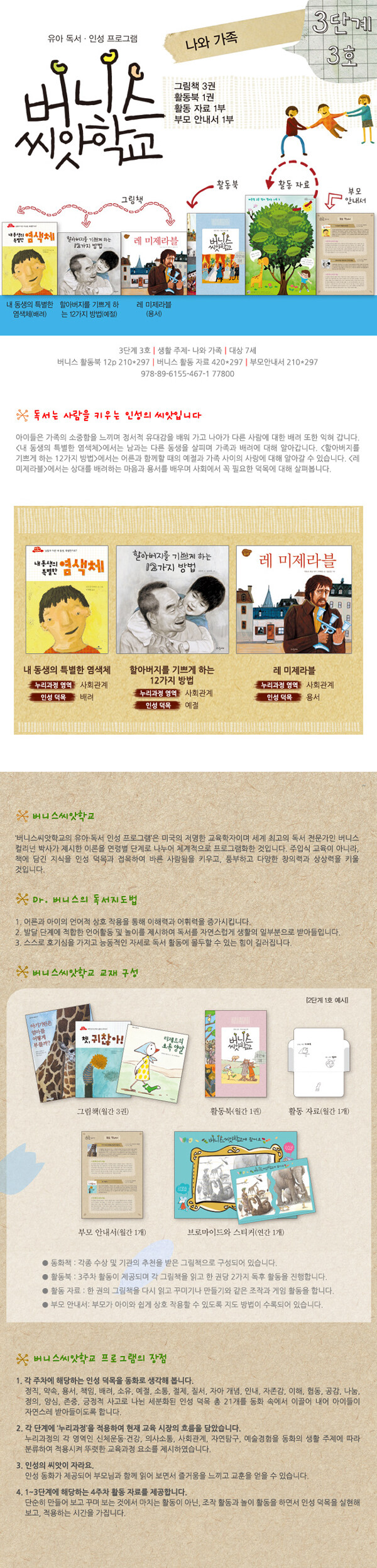 · 제목 : 버니스 씨앗학교 3단계 3호 (그림책 3권 + 활동북 1권 + 활동 자료 1부 + 부모 안내서 1부) (5월 생활 주제 - 나와 가족)
