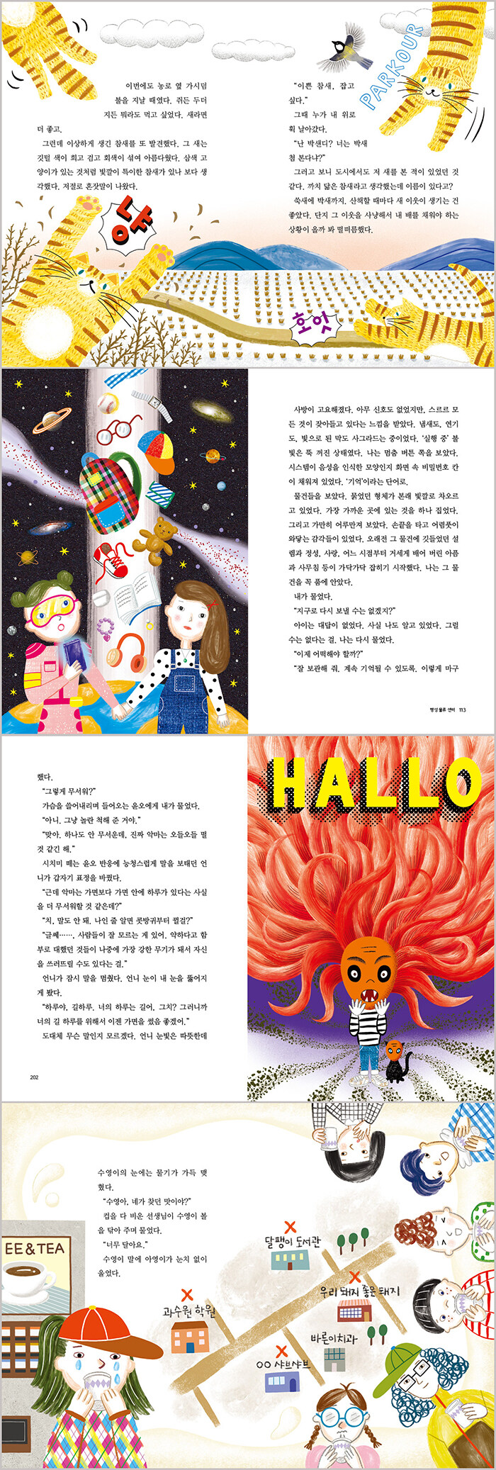 안미란의 〈거침없이 파쿠르〉에서는 도시 생활을 하던 고양이가 파쿠르를 할 수 있는 공간이 마땅치 않은 시골로 내려가 생활하는 모습이 그려진다. 고양이는 시골에서만 볼 수 있는 동물을 만나고, 상황에 적응하며 바뀐 환경에서의 재미를 찾아낸다.