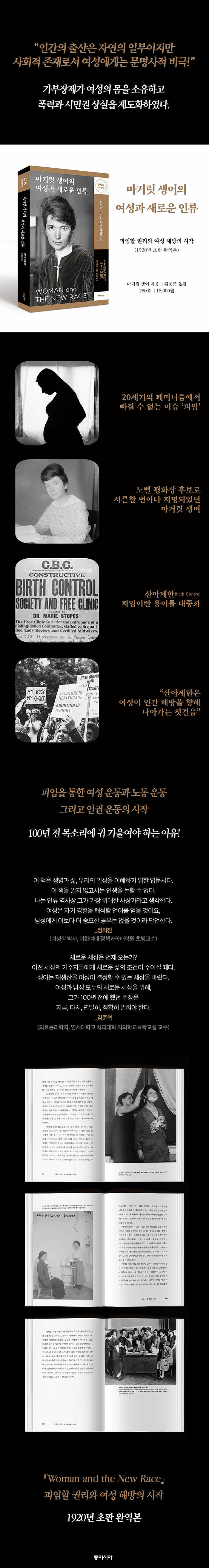 사회는 페미니즘 정신을 다룰 때 명확하게 정의된 대안들을 선택한다. 여성 본성의 근본적인 충동을 속박하기 위해 계속해서 폭력에 의지할 수 있고, 여성을 단순한 재생산 도구로 삼고 여성이 저항하면 처벌할 수도 있다. 아니면, 엄마가 될 것인지 그리고 얼마나 많은 아이를 낳을 것인지를 선택하도록 할 수 있다. 사회는 꺾이지 않는 여성을 계속 짓밟으려 할 수도 있고, 아니면 자유를 향한 여성의 주장을 인정하고 수많은 파괴적인 장벽을 들이미는 것을 멈출 수도 있다. 후자를 선택하면 과학적 피임 기구의 사용에 대한 모든 제한을 없애야 할 뿐만 아니라 그 사용을 합법화하고 장려해야 한다.