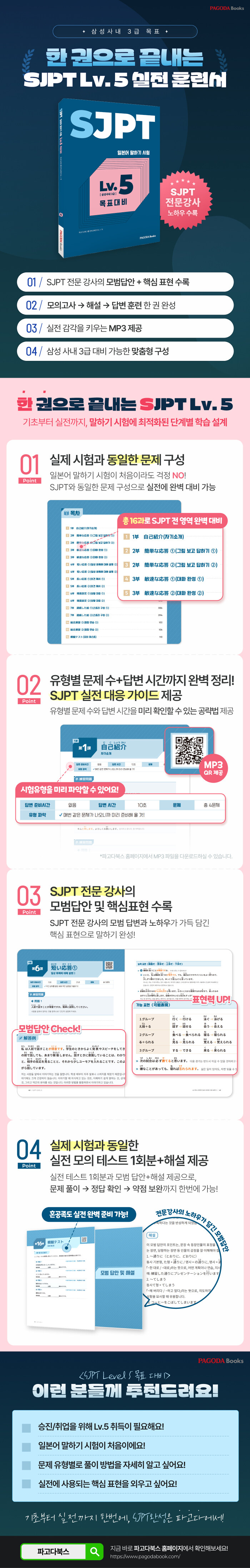 - SJPT 전문 강사의 노하우를 담은 모범답안과 핵심표현 수록
