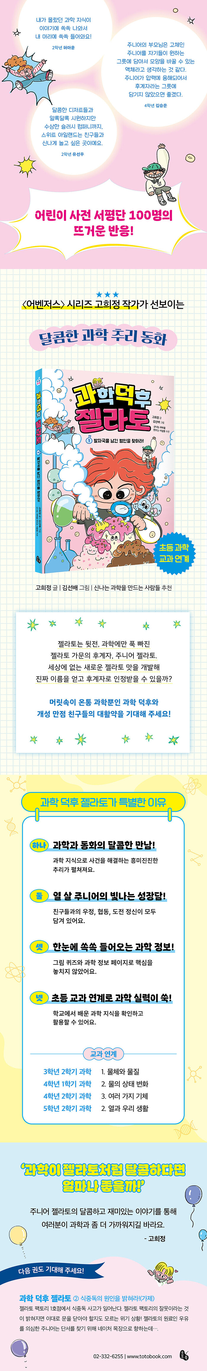 초등 과학의 기초부터 중등 과학까지 자연스럽게 연결하는 구름다리 〈과학 덕후, 젤라토〉 시리즈. 과학 지식, 추리의 재미, 캐릭터의 성장 이야기를 균형 있게 담아낸 과학 덕후, 젤라토의 모험은 앞으로도 계속된다. 젤라토 가문을 노리는 악당들이 주니어 주위를 맴도는 가운데, 젤라토 팩토리 1호점에는 또 어떤 위기가 닥쳐올까?