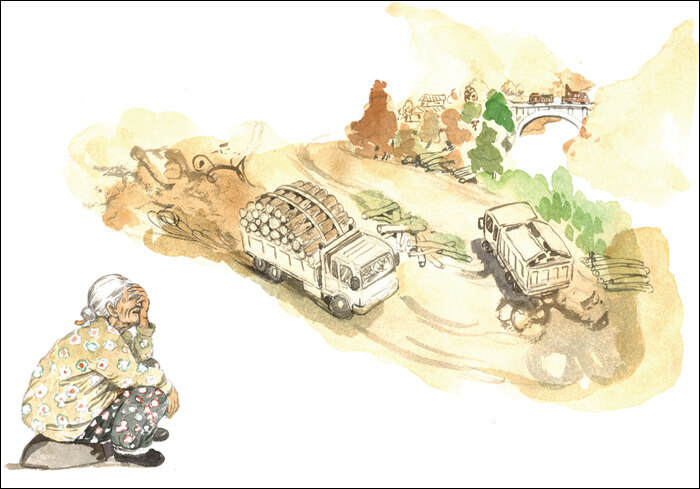 솔이가 눈을 가늘게 뜨더니 은강이에게 손짓을 했어요. / “너도 들어봐.” / “뭘?” / “나무가 말하는 거.