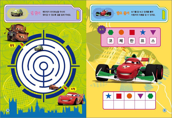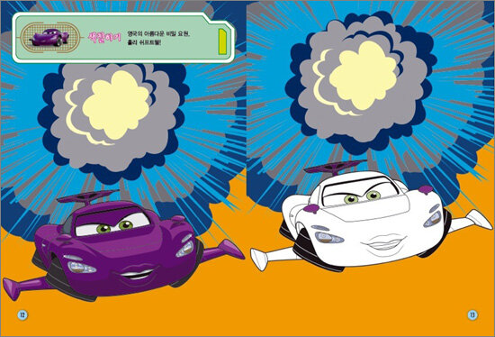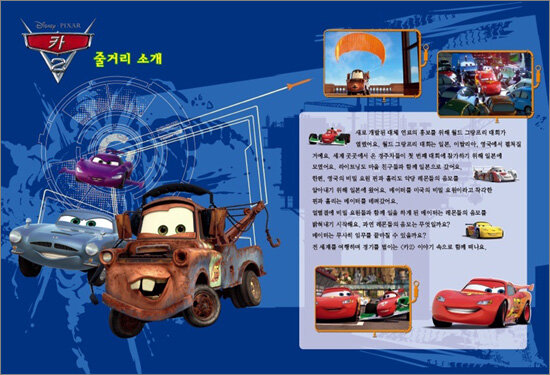 디즈니 색칠스티커북 시리즈. 디즈니·픽사 [카2] 등장인물들과 함께 색칠 놀이, 스티커 놀이, 암호 풀기, 길 찾기 등 다양하고 재미있는 활동을 할 수 있다. 월드 그랑프리 대회 우승을 노리는 라이트닝 맥퀸의 실감나는 자동차 경주 외에도 라이트닝 맥퀸의 단짝 친구인 메이터가 본의 아니게 비밀 요원들의 첩보전에 휘말리는 이야기도 덧보태져 더 풍성하고 흥미로운 이야기를 담고 있다.