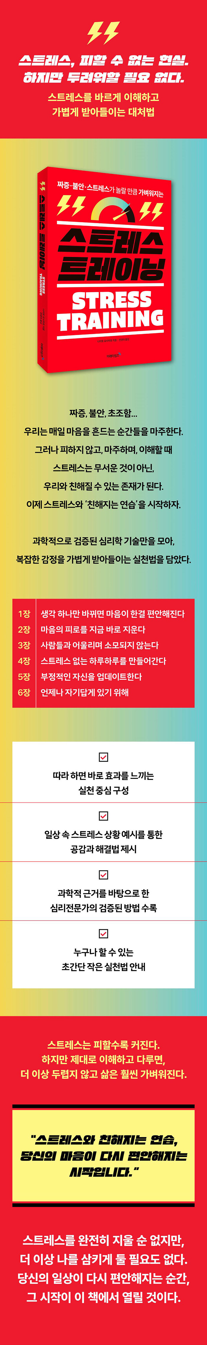 적당한 스트레스는 결코 나쁜 게 아닙니다. 특히 젊은 시절에는 스트레스를 피하지 않고 온전히 겪어보는 것도 좋습니다. _『1장 생각 하나만 바뀌면 마음이 한결 편안해진다』중에서